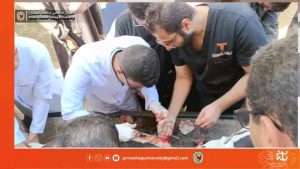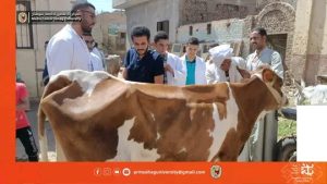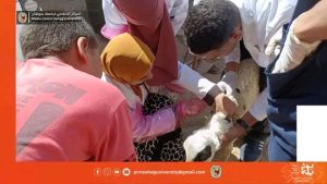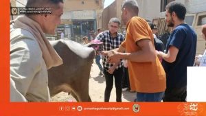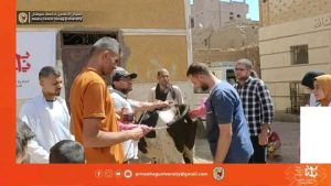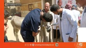 تنفيذاً للمبادرة الرئاسية “بداية” علاج ٩٥٠ حيوان بقرية ونينه الغربيه خلال قافلة جامعة سوهاج البيطرية المجانية